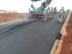 máquina de perfil contínuo, executadas sobre uma camada de apoio, podendo ser base ou sub-base, devidamente controlada e conformada a seção do pavimento.