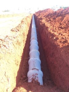 A rede é construída geralmente com manilhas de concreto e é usada para levar a água coletada para os rios ou córregos da cidade.
